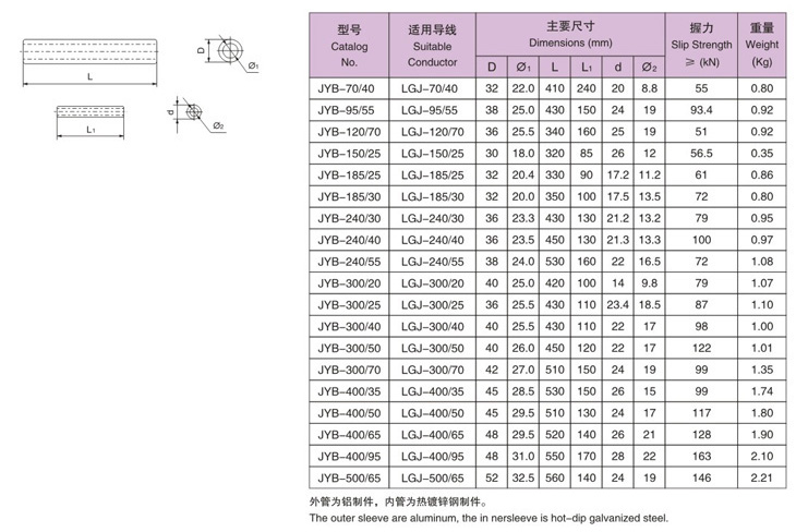 接續(xù)管(鋼芯鋁絞線用、爆壓塔接) |