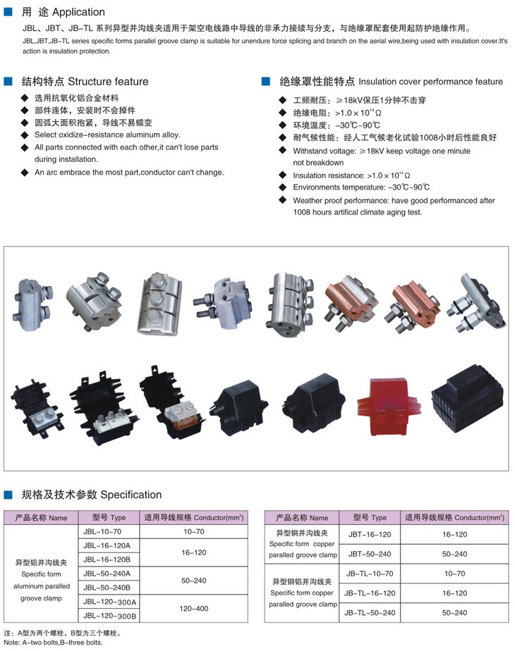JBL、JBT、JB-TL系列異型并溝線夾及絕緣罩